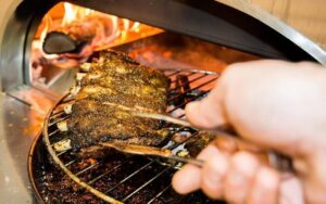 - Direct sütés nyitott ajtóval: helyezze az ételeket közvetlenül az izzó parázs fölé. Kisebb húsok sütésre alkalmas, ahol a Maillard reakciónak köszönhetően ízletes pirult ételeket kapunk, amik szinte elolvadnak az ember szájában.