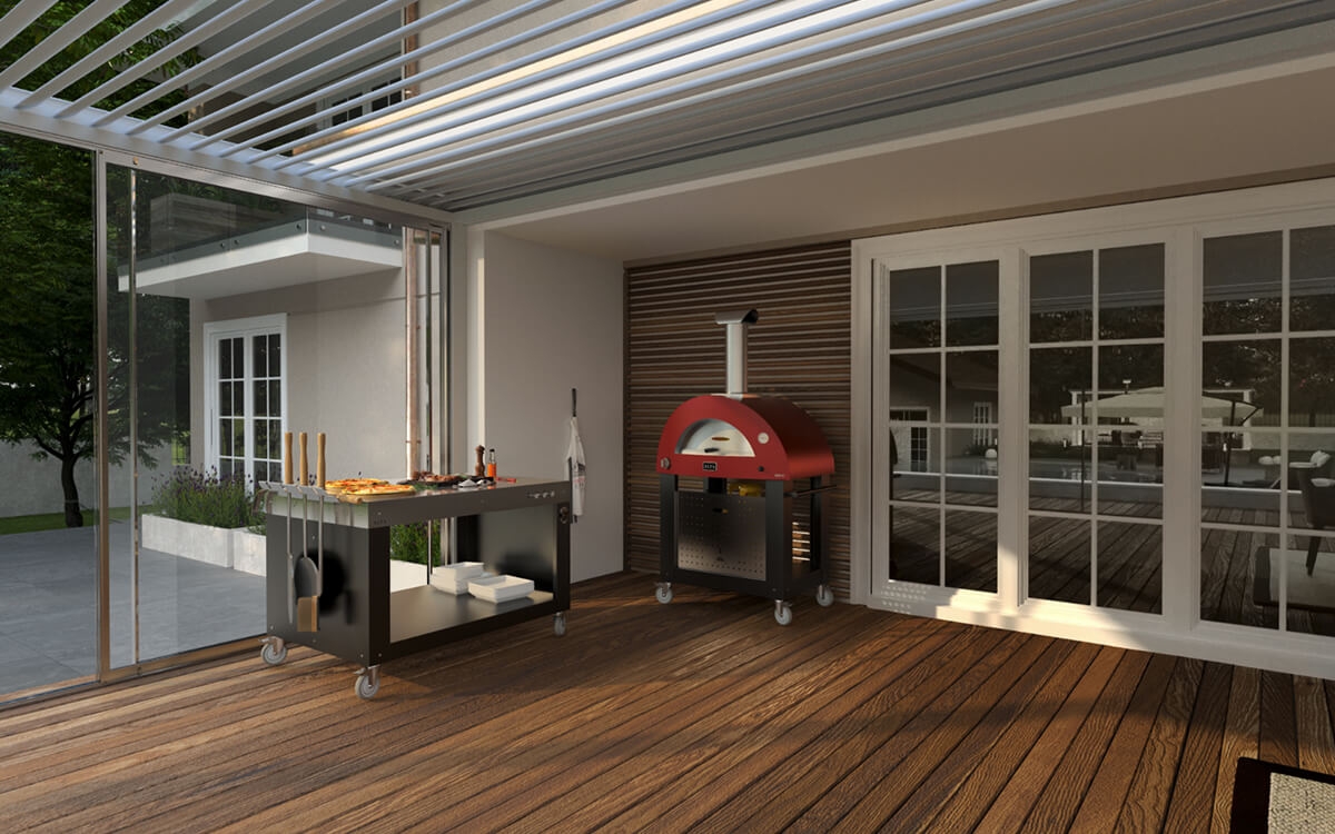 Az Alfa Forni úgy döntött, hogy kielégíti a vásárlók igényeit a Brio-val kapcsolatban, és kiegészíti kifejezetten erre a célra kialakított lábazattal. A kerekek a könnyű mozgatást szolgálják.